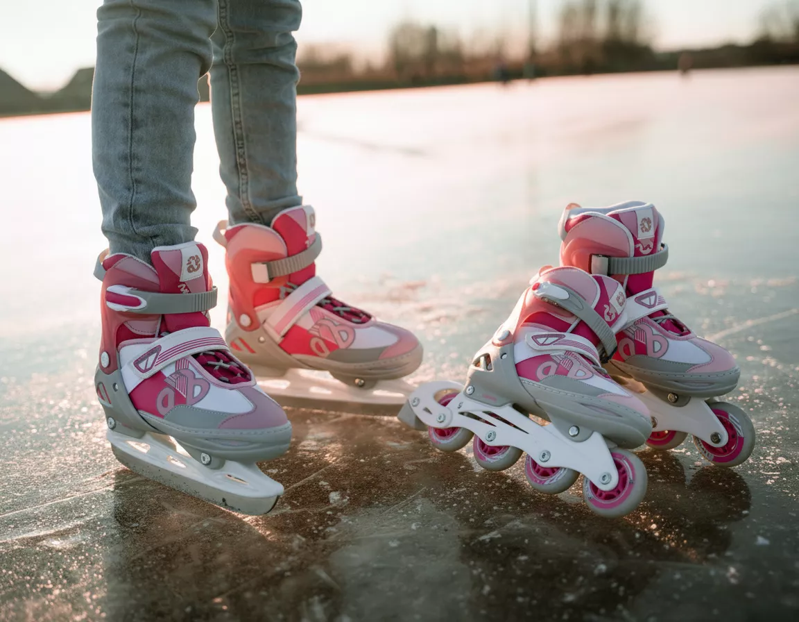 Met deze skates geniet je het hele jaar door van plezier! Je wisselt moeiteloos tussen inline skates en schaatsen, maar net waar je zin in hebt. En het scheelt je ook nog eens ruimte in de kast!